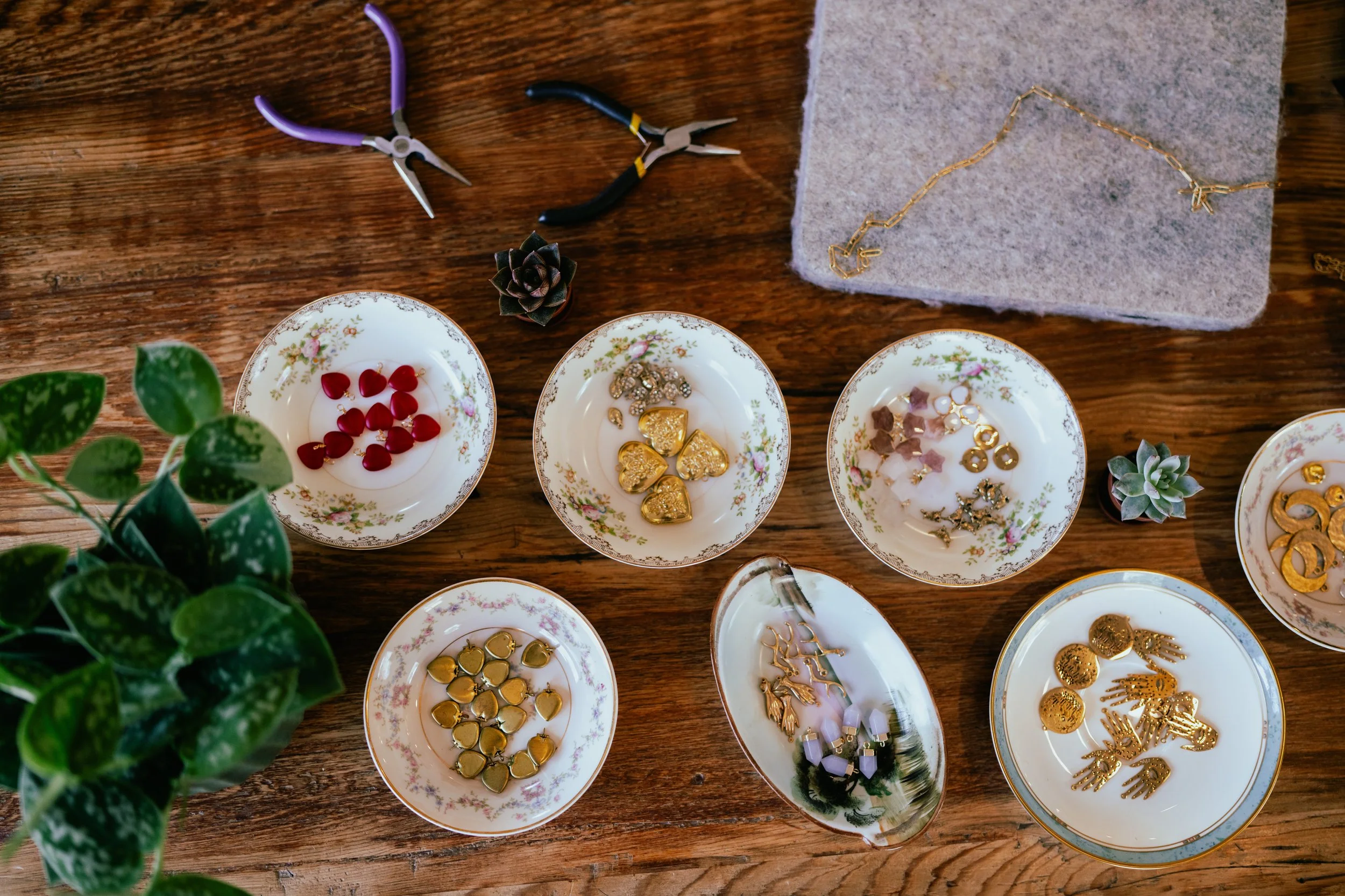 You’re also encouraged to bring your own heirloom jewelry. Old brooches, earrings and necklaces can be turned into charm or necklace elements within your own piece.